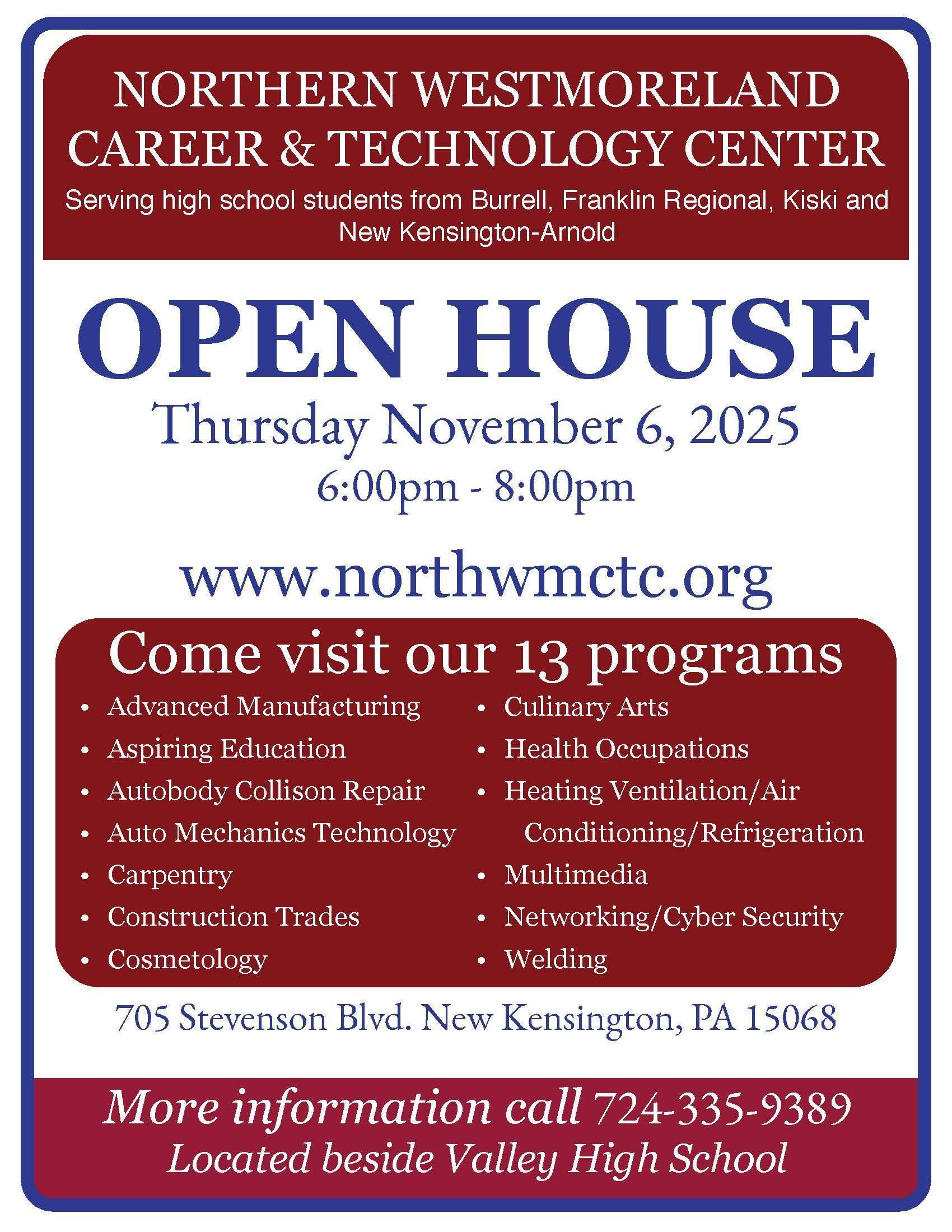 NWCTC Open House - Thursday, November 6, 2025